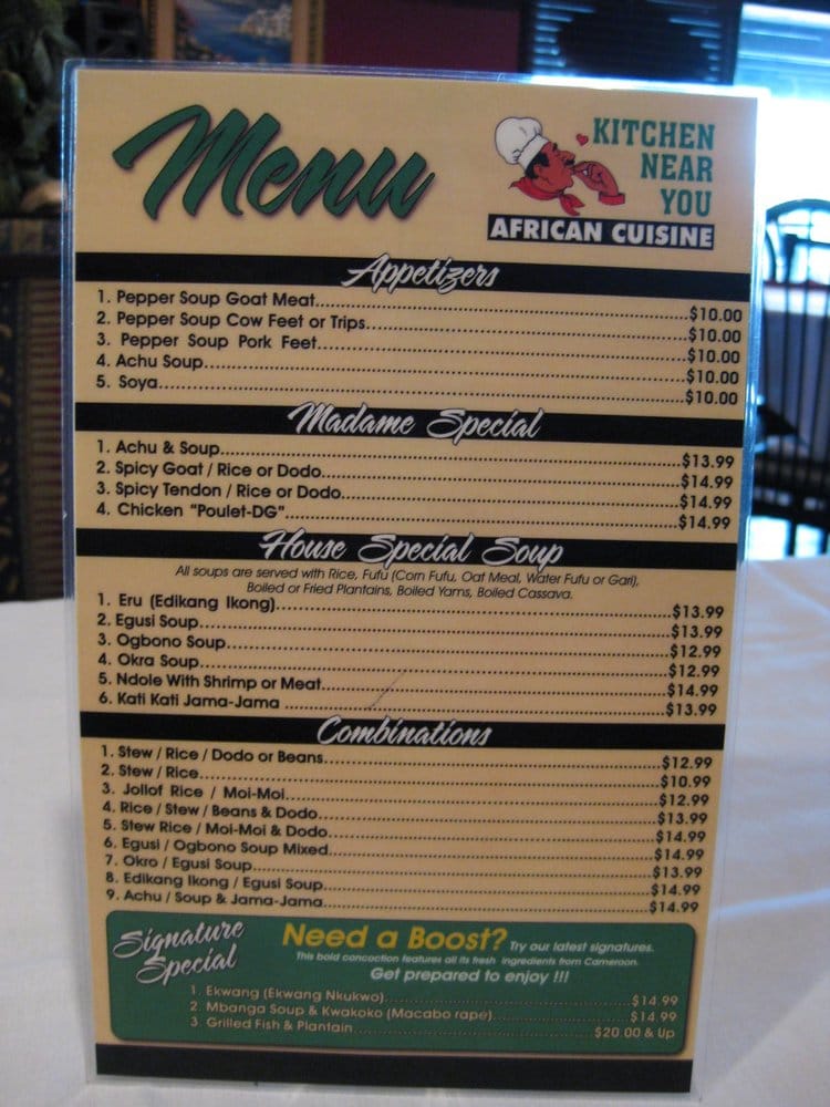 Introducing Kitchen Near You, a vibrant African restaurant located in Hyattsville, MD. Known for its lively atmosphere, this spot offers a range of traditional dishes that will tantalize your taste buds. From the flavorful Pepper Soup Goat Meat to the delicious Okra Egusi Soup Combo, there's something for everyone. Customers rave about the Soya meat and Jollof rice, highlighting the freshness and bold flavors. The Suya, a fan favorite, is described as "amazing" and a must-try. While the service may be a bit slow, the friendly staff and authentic cuisine make up for it. Kitchen Near You is perfect for group gatherings or a casual night out. Don't miss out on the best Suya in DC and experience the true taste of African cuisine at Kitchen Near You.